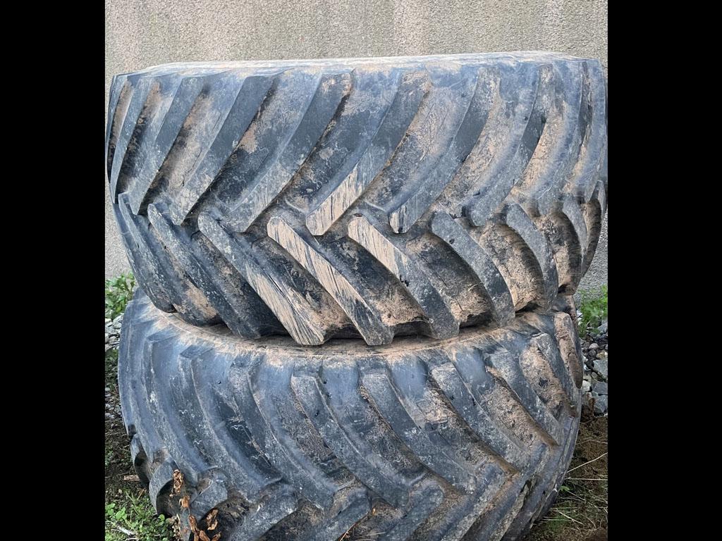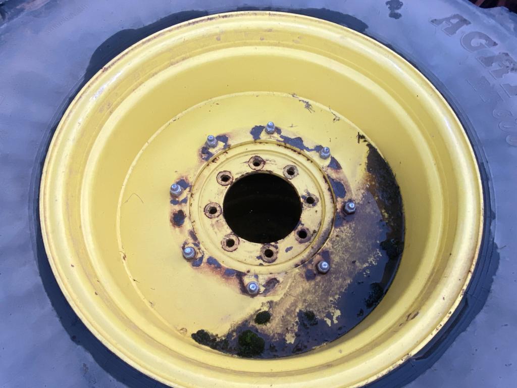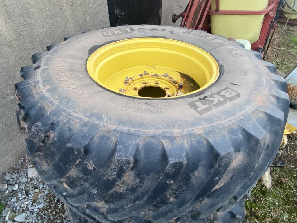 2x 800/65/32 BKT Agrimax floatation tyres fitted to 8 stud rims* bolt in centers* will fit John Deere/New Holland
